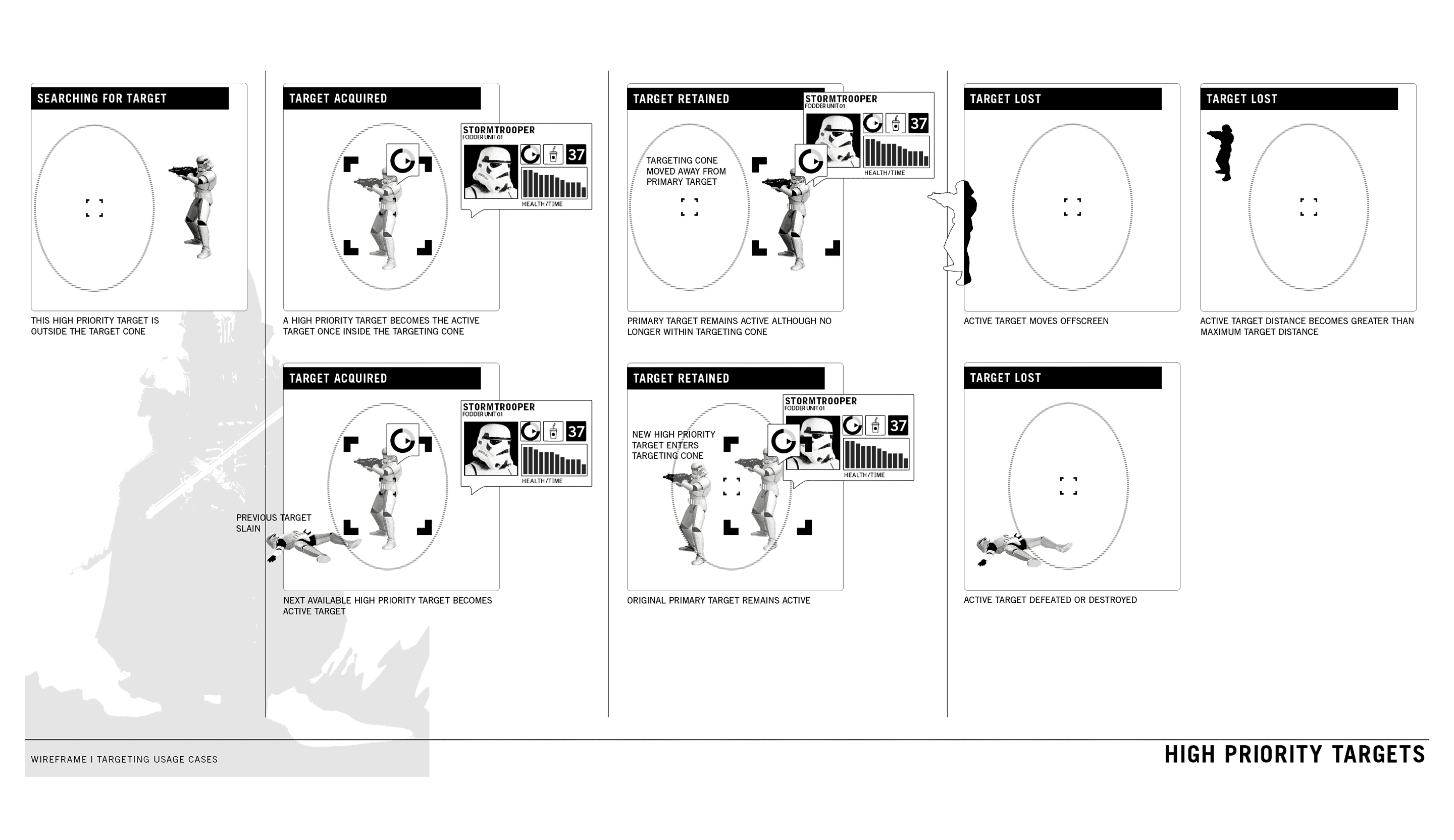 Throwing and moving things (with The Force) was effortless and intuitive thanks to a targeting system that prioritized a hierarchy of nearby objects without requiring precise aim. I prototyped the Force Targeting system in-engine using Lua, running on PlayStation 3 hardware to test reactivity and timing.